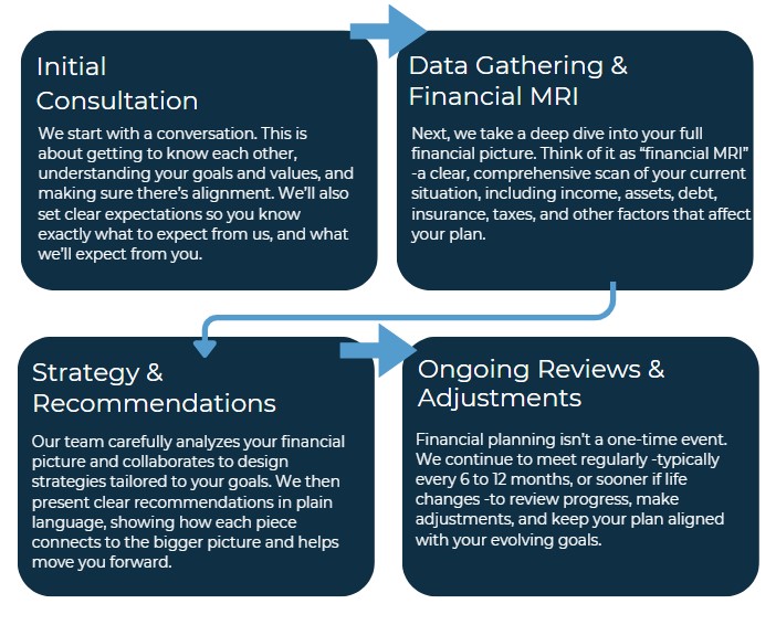 This process is designed to take something complex and make it clear, actionable, and adaptable so you can move forward with confidence knowing every area of your financial life is working together.